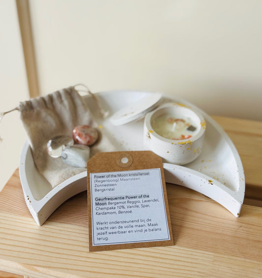 Maansteen stimuleert vrouwelijke kracht en geeft rust. Deze collectie helpt je met slapen en heeft een beschermende werking. Werkt ondersteunend bij de kracht van de volle maan.