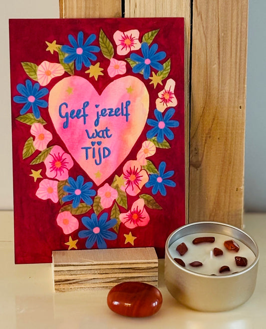 Deze bijzondere collectie is gemaakt met de etherische olie blends van Natuurzuiver (Lotus Diffusers). Betekenisvolle kaarsen en cadeau sets voor jezelf of iemand die jij dat gunt. Warm Hart voor een beetje liefde, Puur Positief voor iemand die wat positiviteit kan gebruiken, Helemaal Hier als reminder voor zelfliefde en Vol Vertrouwen voor als je even niet zo stevig staat.