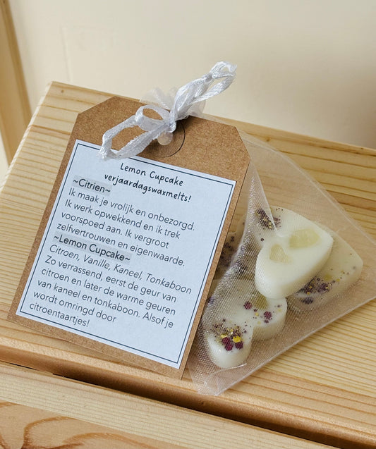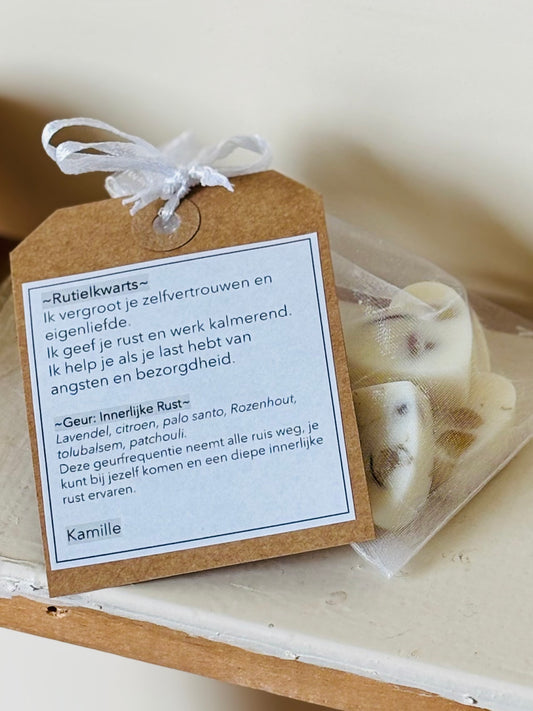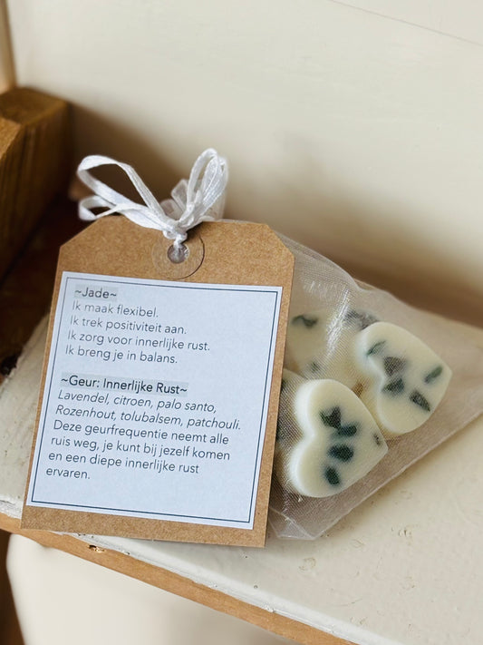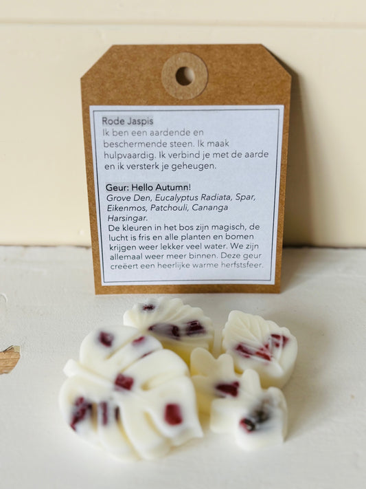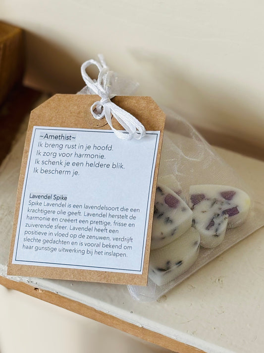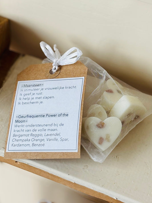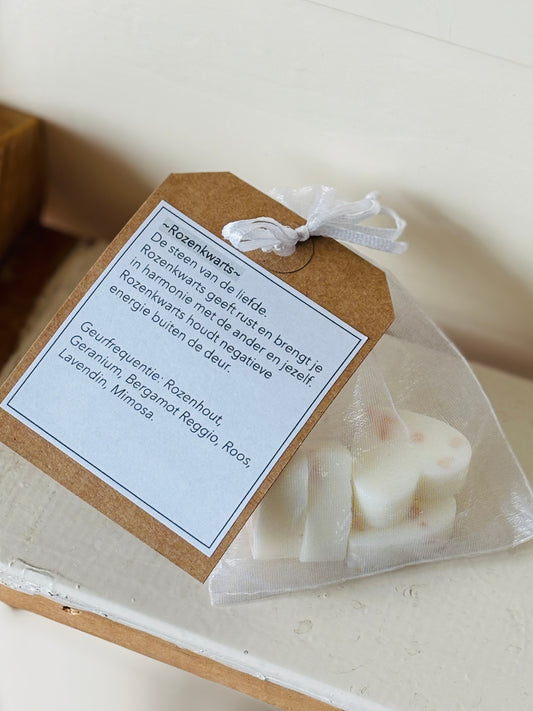 Waxmelts zijn lieve kleine geurbommetjes, die gemaakt zijn van koolzaadwas en ze hebben ook nog eens een mooie betekenis. In iedere waxmelt zit een prachtig steentje verstopt, die tevoorschijn komt als je het laat smelten in een brander. Eén waxmelt geeft je uren geurplezier!