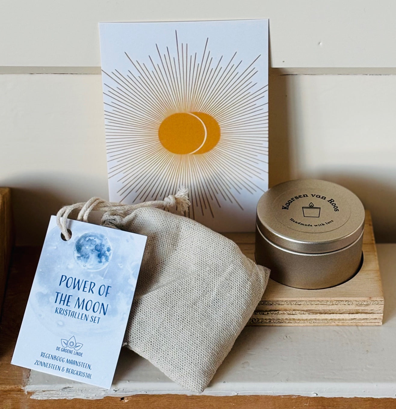 Deze set kristallen bestaat uit een zakje met Power of the Moon kristallen. Een combinatie van kristallen om je te helpen bij de kracht van de volle maan. De Regenboog Maansteen helpt je om je op een positieve manier te verbinden met de volle maan. De Zonnesteen brengt de maan energie in balans. De Bergkristal reinigt je energetische veld en geeft je een boost als je je futloos voelt.
