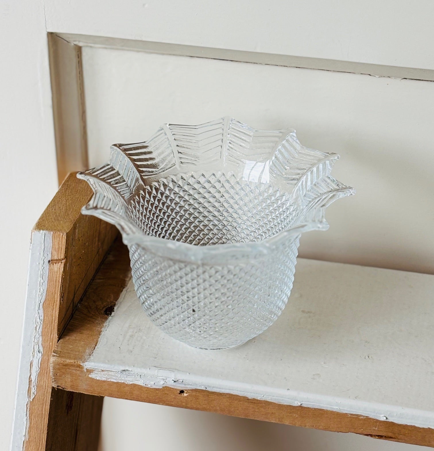 Vintage glazen pot in de vorm van een bloemkelk.
